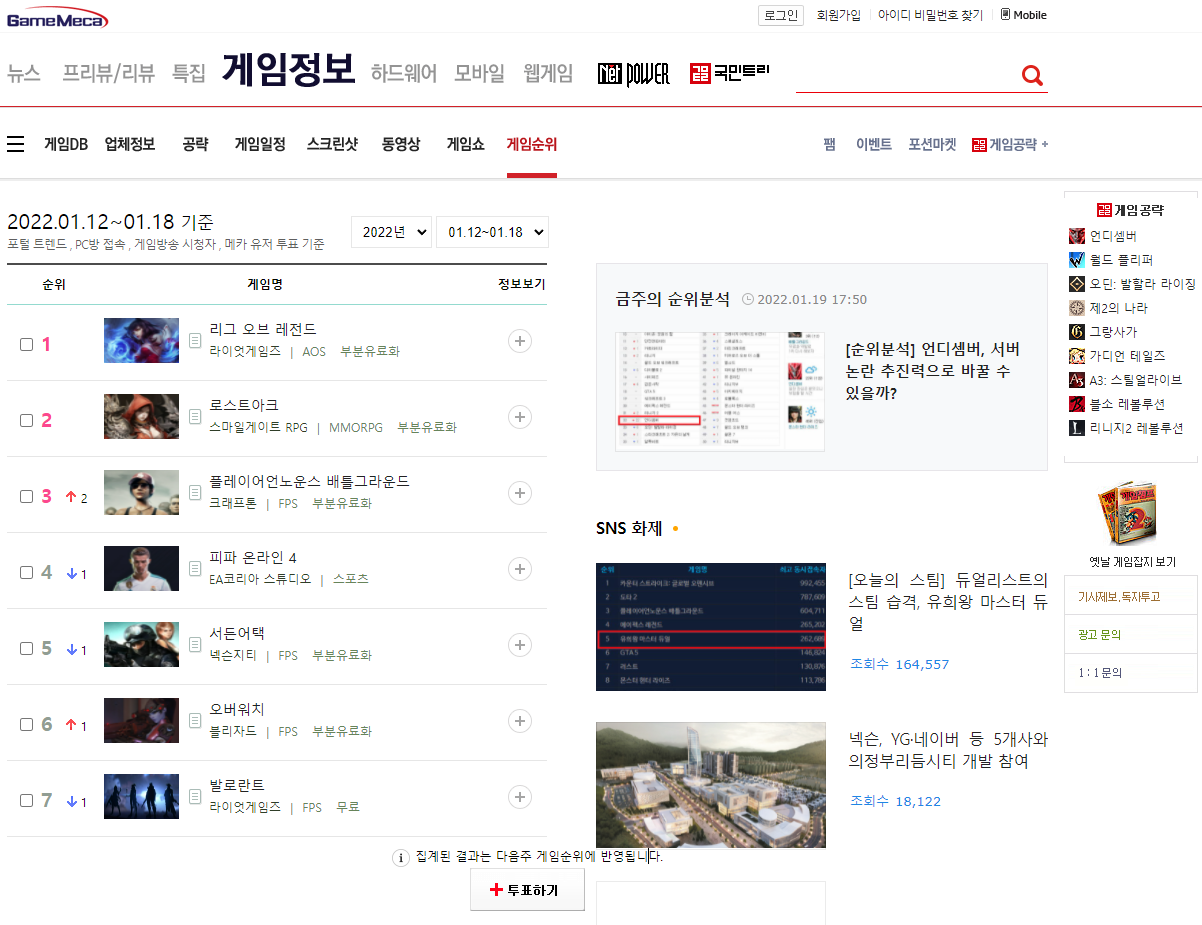 (1)게임 순위