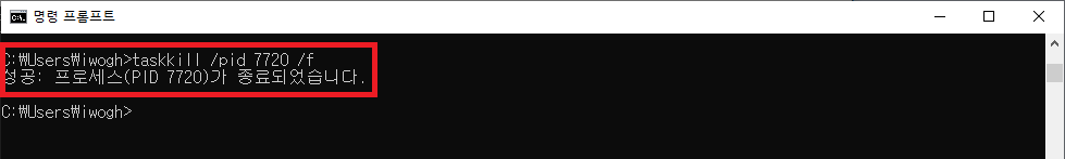 8080 포트를 이용하고 있는 PID인 7720을 종료 시켜주면 된다.
